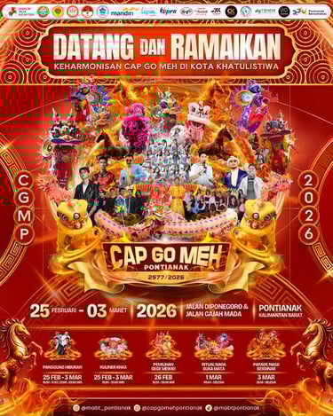 Diselenggarakan pada awal Maret 2026, Cap Go Meh Pontianak menghadirkan berbagai kegiatan budaya, ekonomi kreatif, dan atraksi khas yang menarik perhatian masyarakat lokal maupun wisatawan dari berbagai daerah.