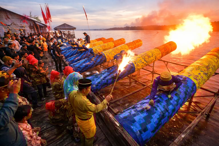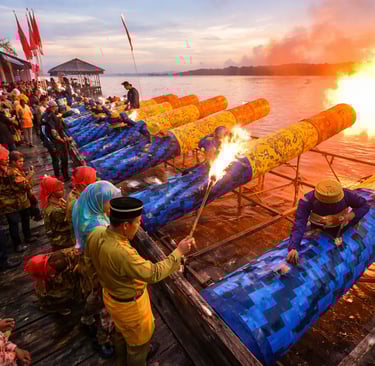Tradisi Meriam Karbit kembali memeriahkan suasana malam takbiran dan Hari Raya Idul Fitri di Kota Pontianak. Permainan rakyat khas tepian Sungai Kapuas ini biasanya digelar pada malam menjelang Idul Fitri dan hari raya, yang pada tahun 2026 diperkirakan berlangsung di bulan Maret. Tahun ini, rangkaian kegiatan akan dimulai pada 20 Maret 2026, menghadirkan kemeriahan yang telah menjadi bagian dari identitas budaya masyarakat setempat.Tradisi ini menggunakan meriam yang dibuat dari batang kayu besar dan diisi bahan bakar karbit untuk menghasilkan dentuman keras yang saling bersahutan. Pelaksanaannya berpusat di sepanjang tepian Sungai Kapuas, terutama di wilayah Pontianak Timur, Selatan, dan Tenggara. Puluhan kelompok peserta dengan ratusan meriam turut ambil bagian, saling beradu kekuatan bunyi dalam suasana penuh semangat dan kebersamaan. Selain menjadi warisan budaya yang terus dilestarikan, Meriam Karbit juga dikenal sebagai salah satu daya tarik pariwisata unggulan di Kalimantan Barat yang selalu dinantikan masyarakat dan wisatawan setiap tahunnya.