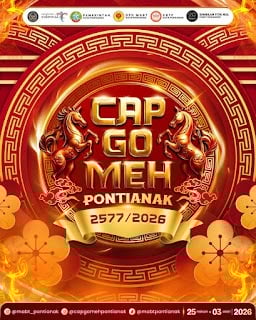 Cap Go Meh Pontianak 2577 / 2026 kembali hadir dengan energi yang lebih menyala. Terinspirasi dari Shio Kuda Api, perayaan tahun ini membawa semangat penuh daya, gerak, dan antusiasme, berpadu dengan nuansa merah dan emas yang identik dengan kemeriahan serta tradisi Tionghoa di Kota Khatulistiwa. Bersiaplah menikmati rangkaian budaya yang spektakuler dan penuh warna pada 25 Februari–3 Maret 2026 di Pontianak, Kalimantan Barat. Jangan lewatkan salah satu perayaan budaya terbesar di Kalimantan Barat ini!